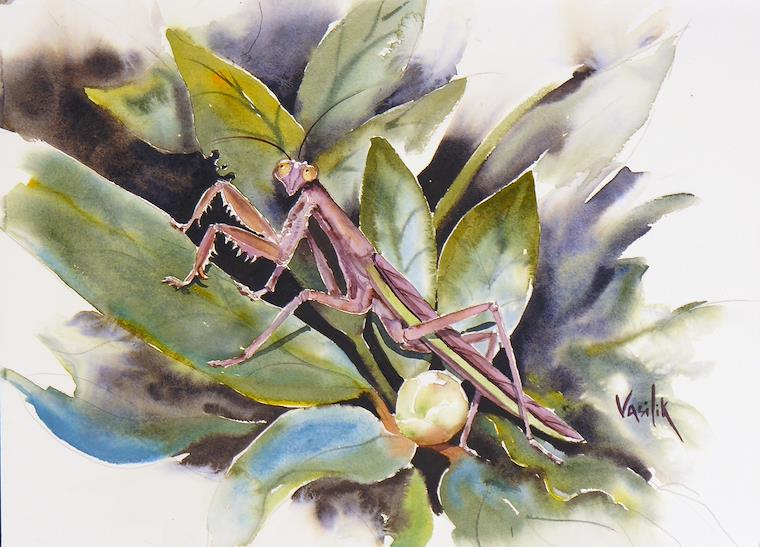 2. Praying MantisSOLDFound this fellow in my rhododendron.11" x 15" - $450