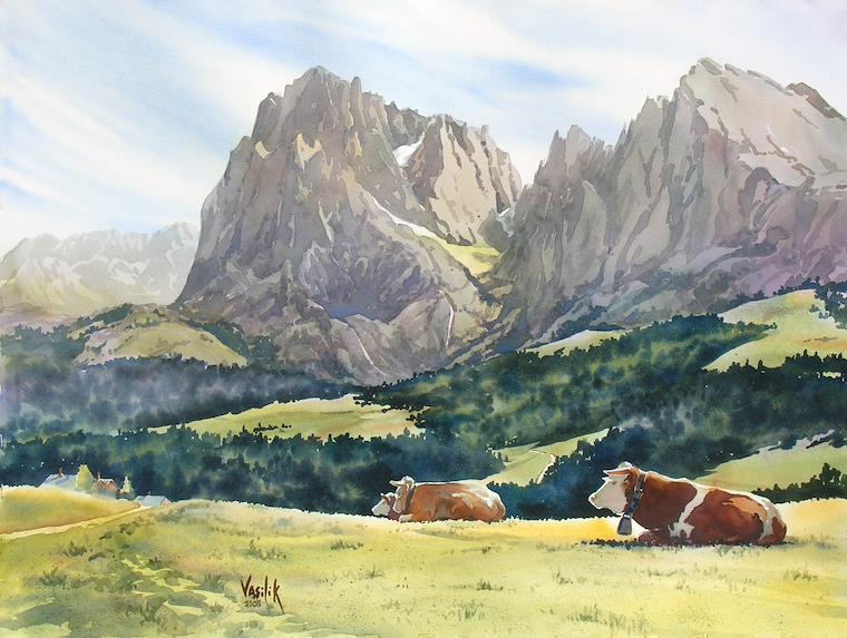 The Alpe di Siusi, a preserved alpine area of Austria with the peaks of the Dolomite Mountains. This is "Sound of Music" country.