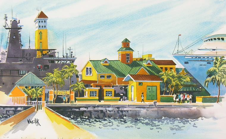 11. The Port at NassauThese brialliantly colored buildings greet the visitor to the island.14" x 24" - $1,050