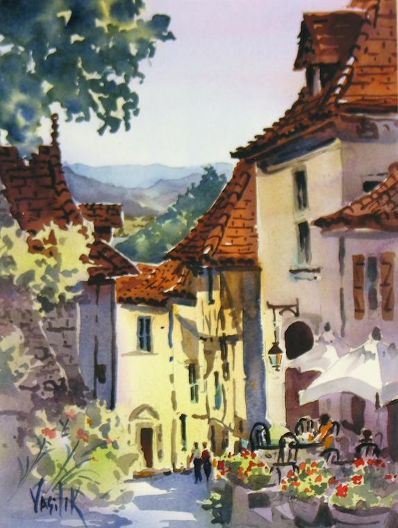 We stayed at the tiny hotel on the right in the small hillside village of St. Cirq Lapopie on our way to visit the 40,000 year old cave paintings at Pech Merle.