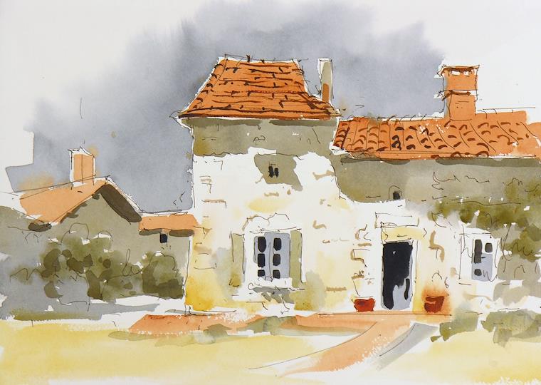 An old farm house was renovated into guest lodgings at the Petit Rousset country guest complex in the Perigord area of France. My painting group stayed here and this was the first painting demo for the class.