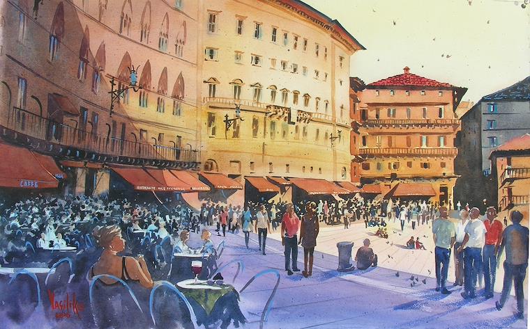 Horse racing is still held twice a year in this famous square in Siena, Italy. The Palio Delle Contrade. But, most of the time, it's filled with tourists and townfolk out for a stroll, a meal or a glass of wine.