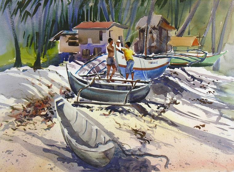 It was the end of the day and I was tired, hungry and cross but determined to do one more painting before leaving the fishing villages in southern Luzon, the Philippines. I loved the resulting painting. Lesson: "Just Do It".