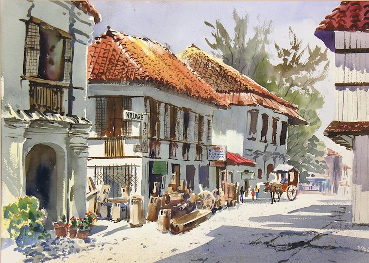 Another painting in a Philippine town with tempting shopping opportunities. But, I resisted and came back with several favorite pieces.