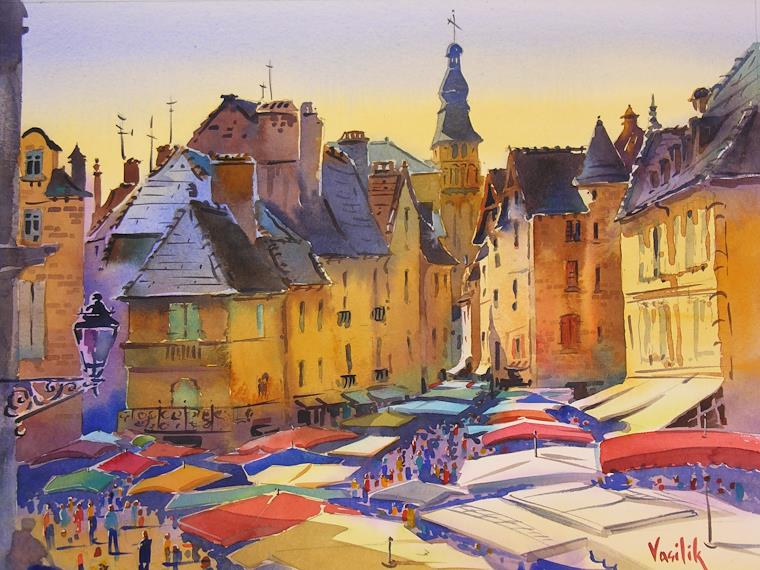 Market at Sarlat19" x 24" - $1,200 SOLDSarlat, France. On market day, this street was filled with tents and merchants, but by 12:30pm, they were all gone.Award: SWS Annual Juried Show, 2010, Honorable Mention