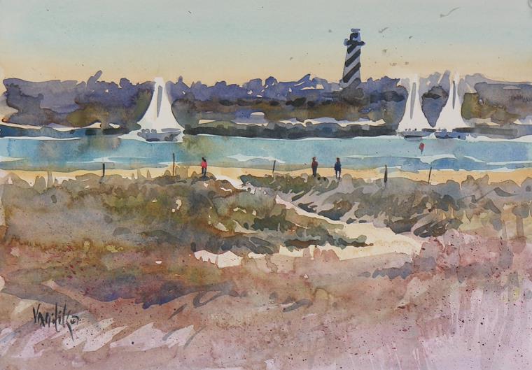On the Inlet10" x 13 1/2" - $500 SOLDSt. Augustine, Florida. Sail boats head for home port under the watchful "eye" of the lighthouse.