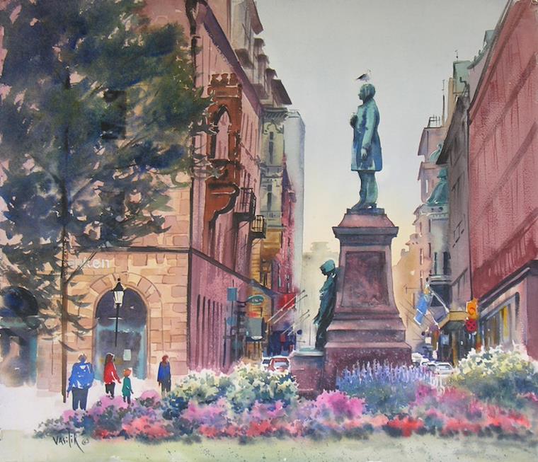 Surveying the Scene20 1/2" x 23 1/2" - $1,300 SOLDHelsinki, Finland. The seagull always seemed to be perched on this monument outside our hotel.