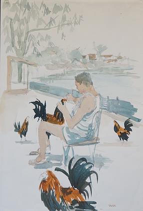 | | Grooming the Cock 14" x 21" - $100 $50 SOLD