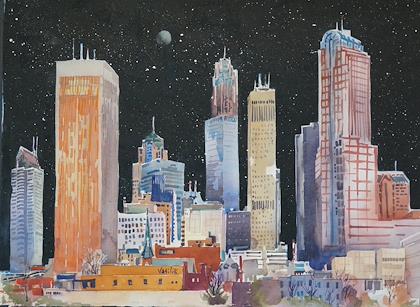 This Plein Air painting features the sky scrapers of Charlotte, NC.
