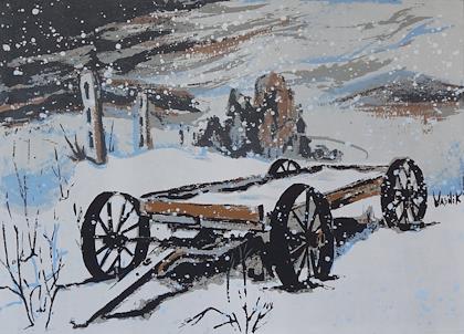 Special shipping. Wood cut. The year my father died, this wagon in the snow seemed to represent my loss.