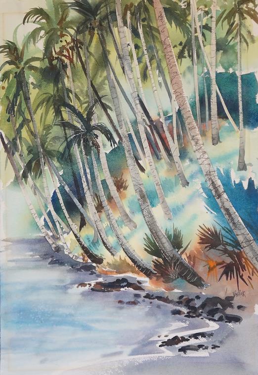 In the Tropics14" x 21" - $150 $75 SOLDSpecial shipping. Coconut and palm trees line the shores of this tropical island in the Philippines.